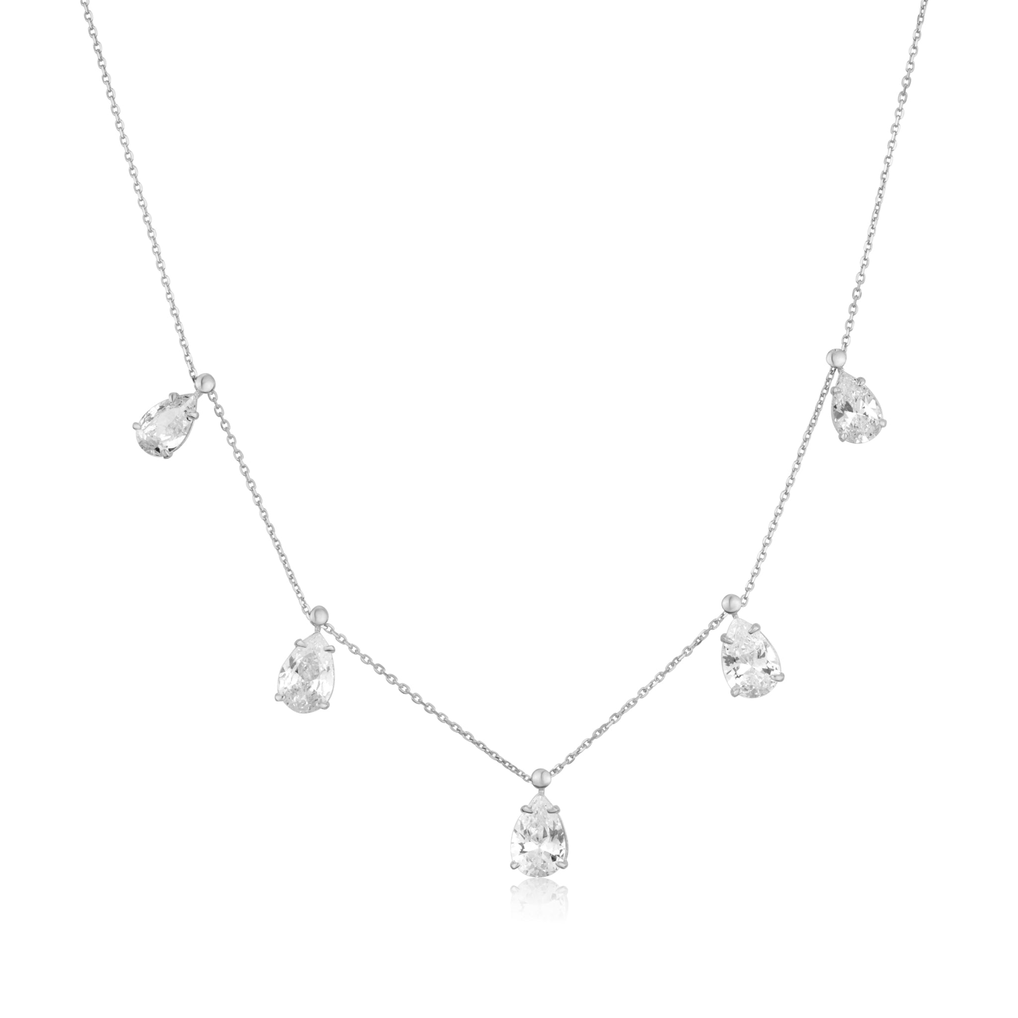 14K white gold necklace set with five drop zircon stones 9/6, 8/5 and 7/5 mm.