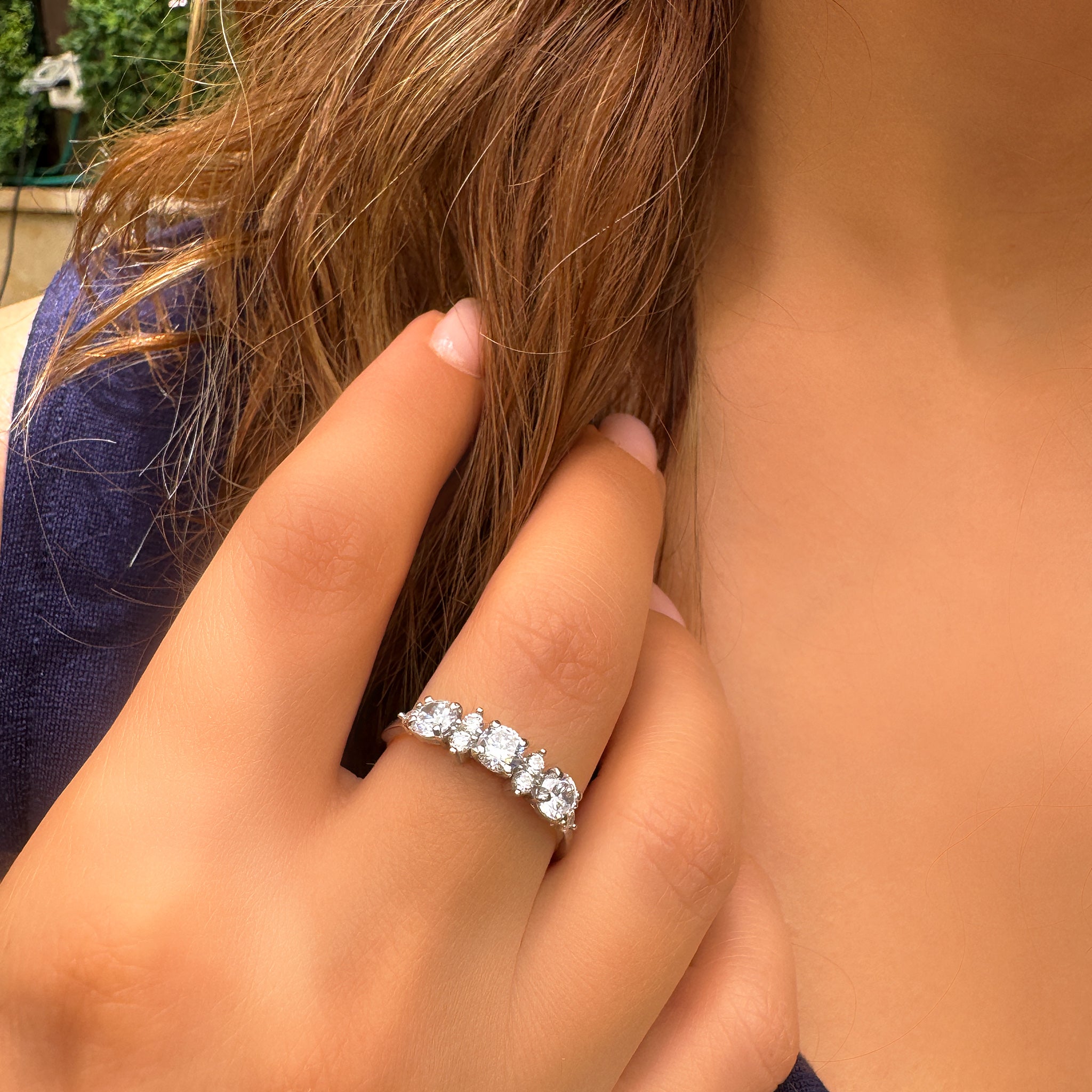 14K white gold ring set with 4 mm, and 2 mm round zircon stones.